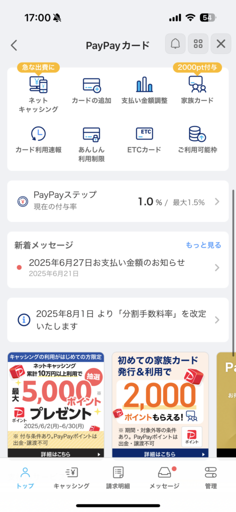 割とPayPayアプリ使うのでPayPayカードは持っていましたが、私が持っているのはVISAでした。VISAはJAL Payへのチャージ時に手数料がかかるので、Masterで2枚目を作りました。